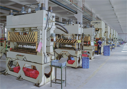 天蓝产业制造基地依托数字化品质控制软件系统,更利于全程品质管理,以完善的生产体系造就强大的产能,从模具制作、锻压铸造、部件冲压、合金成型、注塑、