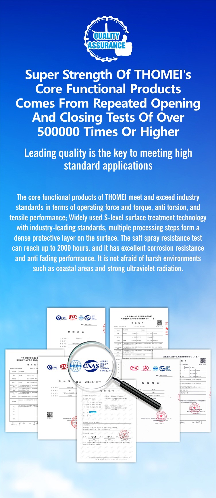 THOMEI not only invests a lot of resources in product development, but also impresses at every step of the production and service process. From innovative design thinking to the use of the best metal materials, or quality control life testing processes, all reflect the advantages of THOMEI, which has a profound understanding of functionality, raw material quality, and cost generation.