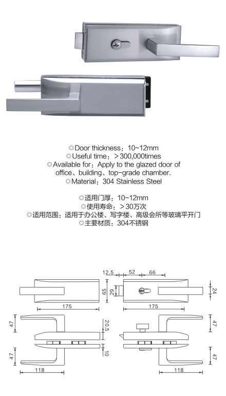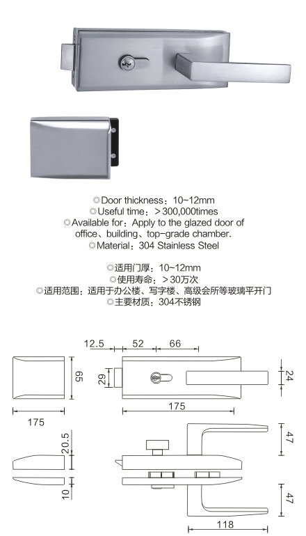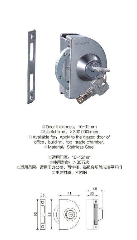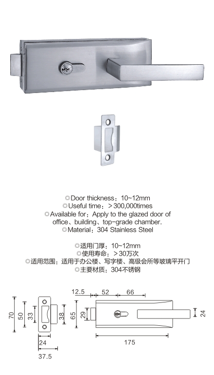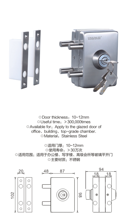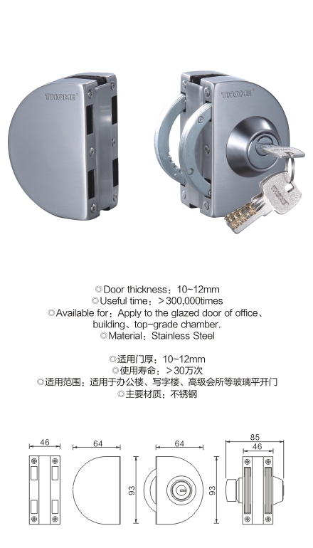 产品中心 ▶ 门控五金 ▶ 玻璃门锁系列