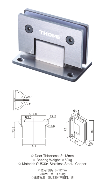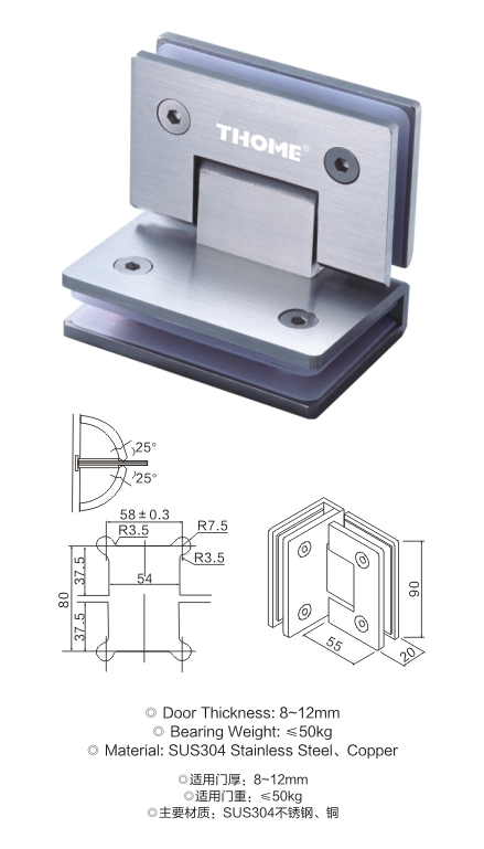 90°精铸浴室门夹(单边偏心)