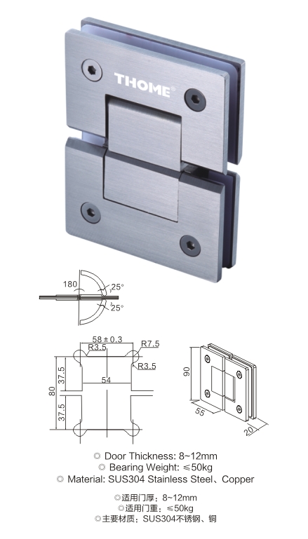180°精铸浴室门夹(双边)