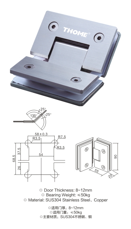 135°精铸浴室门夹(双边)
