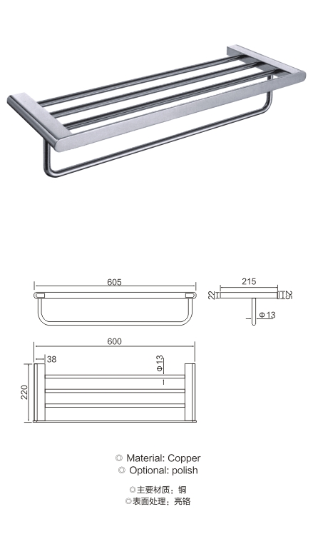 纯铜浴巾架