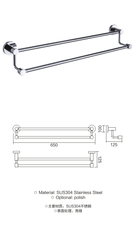 不锈钢圆底座双杆毛巾架