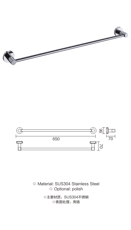 不锈钢圆底座单杆毛巾架