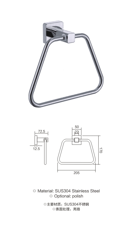 不锈钢方底座毛巾环