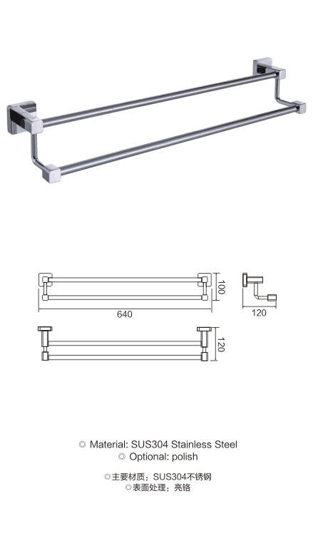 不锈钢方底座双杆毛巾架